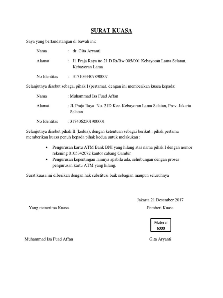 Berikut contoh dari tampilan surat kuasa penjualan tanah tanpa sertifkat sederhana ini, dan bisa di download langsung karena langsung di tampilkan dari google drive. Jangan salah, ulasan ini salah satu diantaranya berisi daftar kumpulan format surat kuasa terbaru (lengkap dengan materai). Download contoh surat keterangan penghasilan orang tua word atau doc. Begitu juga ketika seorang pimpinan perusahaan harus memberikan kewenangan sementara kepada staf yang dipercaya untuk mewakilinya. Agar anda tetap bisa melakukan pengurusan atau pengambilan sertifikat tanah dalam kondisi apapun (foto: Bagaimana cara membuat surat kuasa ahli waris tanah atau rumah untuk melengkapi dokumen saat proses jual beli warisan? Surat kuasa adalah surat yang isinya mengenai pemberian wewenang atau kuasa dari seseorang atau satu pihak kepada orang lain atau pihak lain untuk melakukan suatu hal seperti yang tertera dalam isi surat. Ngomongin tentang contoh surat kuasa pengurusan tanah doc merupakan hal yang cukup menarik terlebih untuk anda yang memang sedang mencari contoh surat. Kelemahan dari surat kuasa tanah adalah tidak adanya batas waktu tertentu kepada orang yang ditunjuk dengan tujuan mengakhiri masa pemberian. Jika kita memiliki harta benda, maka sangat penting bagi kita untuk menjaga dan merawat harta tersebut, seperti harta tanah contohnya. Tuliskan secara detail tentang orang yang memberikan. Untuk memudahkan anda, silakan download contoh surat kuasa di atas dalam format microsoft word document (.doc) melalui link di bawah ini semoga dimudahkan dalam pengurusan pajak nya yha. Oh iya, surat ini bisa anda gunakan untuk pembayaran pajak kendaraan baik di kantor samsat di.