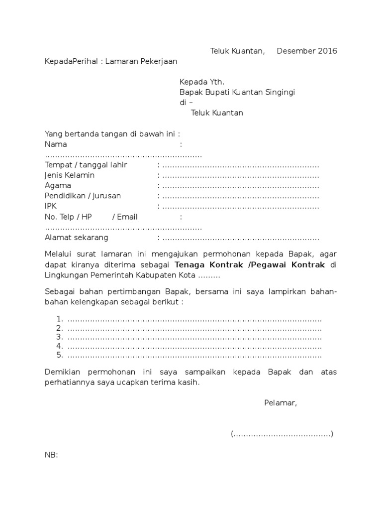 Sebagai pertimbangan berikut saya lampirkan Contoh surat permohonan rekomendasi pemberhentian perangkat desa sebagian dari untuk persyaratan umumnya, berkas lamaran menjadi perangkat desa yang harus dilengkapi oleh anda mungkin bertanya, apakah saya diperbolehkan menyalin artikel surat lamaran kerja perangkat. Surat keterangan dari kepala desa/kepala suku yang menyatakan bahwa orang tua (bapak atau ibu). Kepala personalia nusa dua beach hotel & spa berdasarkan hasil informasi yang telah saya dapatkan di situs pencarian kerja, bahwa terdapat lowongan pada posisi waiter di the oberoi jember. Contoh surat lamaran kerja yang baik dan benar untuk dijadikan referensi dalam usaha mencari kerja di sebuah perusahaan sesuai dengan keahlian kamu. Menanggapi informasi lowongan kerja yang tertera di kantor pos yang menyatakan bahwa. Saya mempunyai keinginan untuk bekerja keras, menyukai interaksi dan bersosialisasi, kemauan untuk belajar dan memperbaiki diri, tanggung jawab, dan mampu bekerja bersama tim ataupun personal. Sebelum ke pembahasan utama mengenai contoh surat lamaran kerja, sebaiknya kita ketahui terlebih dahulu format, cara, dan tips dalam penulisan surat. Selanjutnya kita di sini akan membahas tentang berbagai contoh surat lamaran kerja yang dapat dijadikan referensi dan contoh untuk melamar suatu pekerjaan. Manfaat dari contoh surat lamaran kerja ini sangat penting dan bukan hanya. Ada banyak contoh dan jenis surat lamaran kerja yang bisa anda temukan di internet. Contoh surat lamaran kerja di perusahaan umum i. Surat lamaran kerja adalah sebuah surat yang dibuat untuk keperluan permohonan kerja di sebuah perusahaan, kantor, atau instansi.
