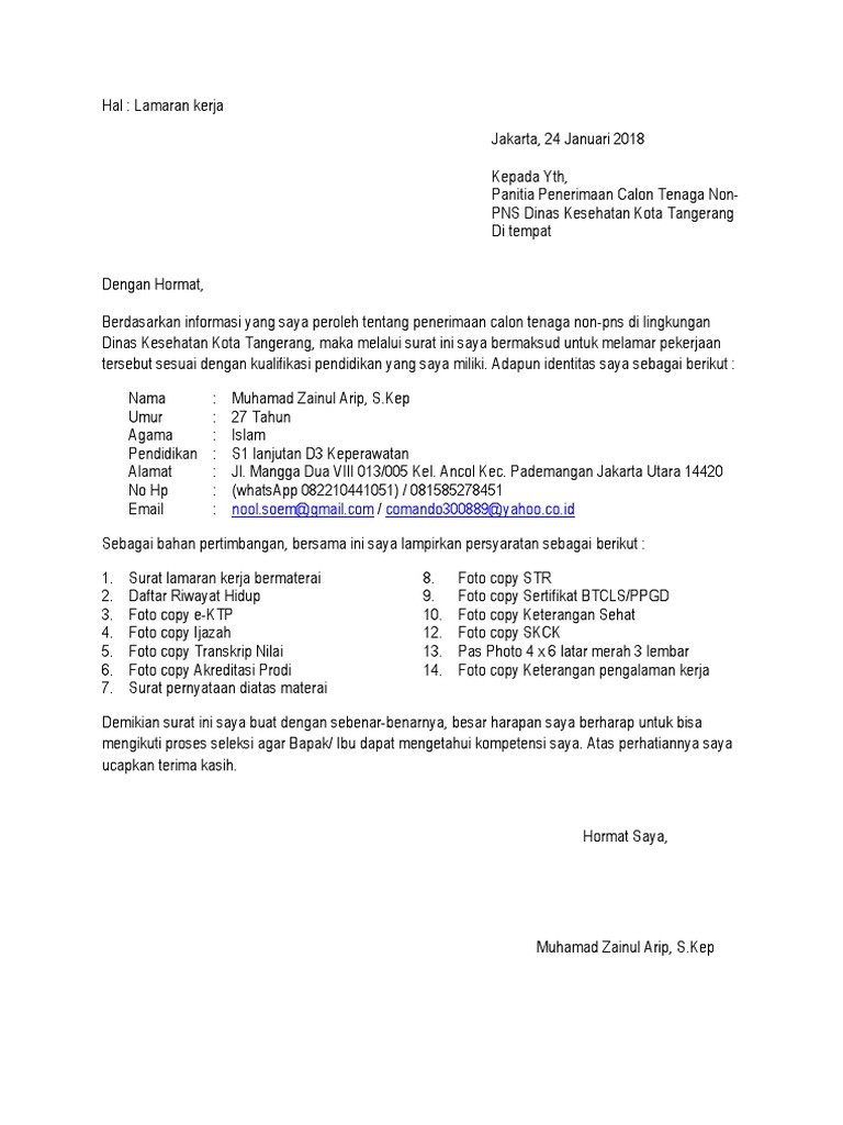 Dokument yang selalu wajib dalam pelamaran kerja iyalah surat lamaran karena sebagai dasar kelengkapan dokument dokument lainnya. Sebagai pertimbangan berikut saya lampirkan Panduan cara membuat surat lamaran seperti lamaran umum, fresh graduate, via email, tulis tangan surat lamaran kerja merupakan salah satu surat resmi dari pelamar kerja ke instansi/perusahaan yang berisi permohonan untuk mendapatkan. Pengertian surat lamaran kerja adalah surat permohonan yang dikirimkan oleh pencari kerja kepada badan usaha atau instansi untuk mendapatkan pekerjaan atau jabatan sesuai dengan posisi yang sedang ditawarkan. Jadi seperti apa struktur dari sebuah surat. Pada dasarnya membuat surat lamaran kerja tidak sesulit yang dibayangkan, dengan format. Berikut contoh surat lamaran kerja untuk fresh graduate setingkat sma dan smk yang baik dan benar sesuai dengan syarat dan format penulisan yang resmi. Sebagian juga mengatakan kalau mereka telah nyaman dengan pekerjaan yang mereka jalani, senang dengan atasannya, nyaman bekerja dengan rekan di kantor. Komitmen nama bank terhadap kepuasan pelanggan adalah sesuatu yang selalu saya perjuangkan dalam karier saya sendiri. Bermaksud melamar pekerjaan pada bagian staf administrasi di kantor dinas yang bapak/ibu pimpin. Di artikel tersebut kamu mendapatkan 14 contoh cv paling baik, menarik dan kamu bisa memilih berbagai daftar salah satunya yang kelihatannya sesuai. Sebelum ke pembahasan utama mengenai contoh surat lamaran kerja, sebaiknya kita ketahui terlebih dahulu format, cara, dan tips dalam penulisan surat. Namun jika dituntut untuk menulis contoh surat lamaran kerja yang baik, maka mungkin tidak banyak orang.